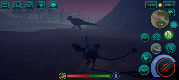 若你选择的是肉食恐龙,就得通过猎杀其他玩家的恐龙来获取肉食;要是选了草食恐龙,食物来源会简单些,只需寻找特殊的蕨类植物,就能收集到足够的量。另外,地图上所有的湖泊和水库都能用来饮水。