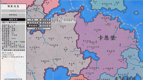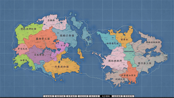 国家设定:为每个国家分配政体(如君主制、共和制)、文化(如农耕、游牧)及生产方式(如科技优先、军事扩张),影响其发展策略。