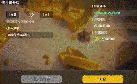 1、传世箱:解锁条件为角色等级达到60级,之后前往飞艇升级中心找到传世箱并将其升至1级即可解锁。解锁后,玩家可将传说及更高品质的装备存入其中,这些装备能额外保留1个赛季。传世箱支持登记武器与防具两类装备,提升其等级可解锁更多栏位,从而存放更多装备。