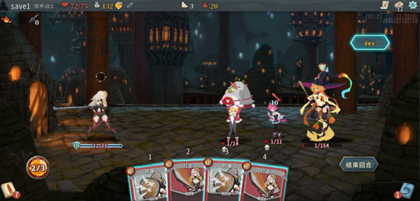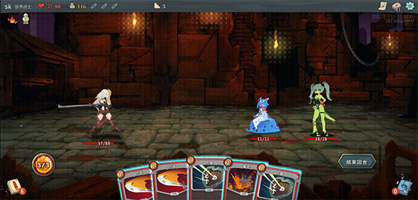回合制战斗:每回合获得3点能量,从牌库抽5张卡牌,可无限出牌直至能量耗尽;牌库抽空时自动洗牌。