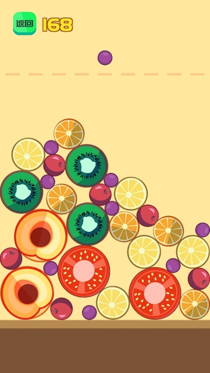 4、只需要一直不断的往下落就可以了,相同的水果可以合并升级。