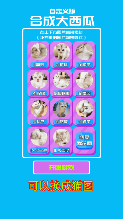 2、图片自定义功能:玩家能够把自己的图片导入游戏里,用来替换原本的水果图片,从而获得极具个性化的游戏体验。