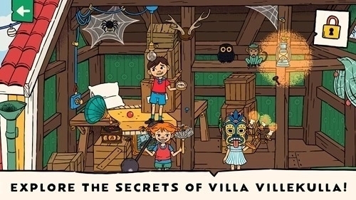 隐藏要素丰富:阁楼需爬梯进入,森林洞穴需用皮皮的“大力士”技能搬开巨石,内藏旧帽子、冒险日记等纪念物,触发隐藏剧情。