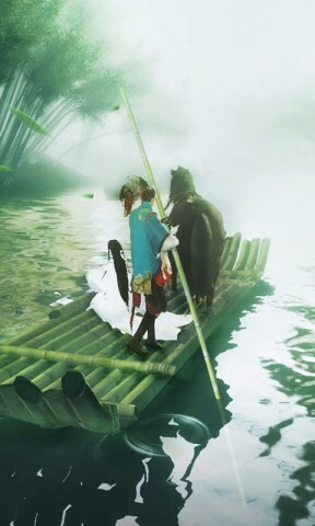 河边的竹筏吸引了你的注意,立即跳上竹筏,拿起竹竿,撑着竹筏渡河,最终到达另一岸,并将女主接上船。