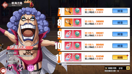 ●装备推荐:在装备和技能选择上都以攻击,暴击,伤害加成为主,提高路飞的输出能力。