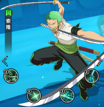 3技能【世界第一大剑豪】:索隆如果是最先出手的则会增加自身的伤害和暴击率,如果不是则会在每次攻击时都有概率额外多攻击1个敌方角色;