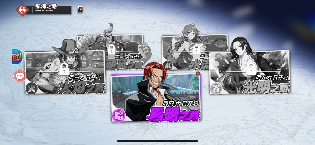 在航海之路中,玩家可以通过副本挑战获取航海图升级所需的材料。不同属性的副本在周一至周五轮流开放,而周六和周日则会同时解锁所有副本,提供更多挑战机会。