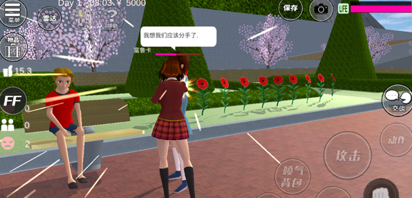 恋爱玩法:与心仪NPC互动,提升好感度,解锁约会、告白、结婚、同居,体验完整的“校园恋爱物语”。