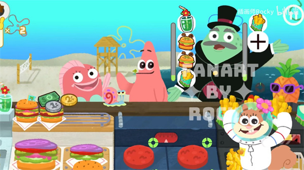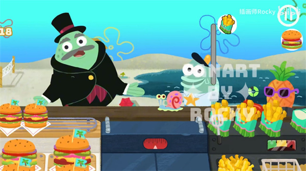 在里面经营着自己的蟹堡王,每天都有大量顾客前来光顾,熟悉汉堡包的制作步骤,持续提升制作速度。