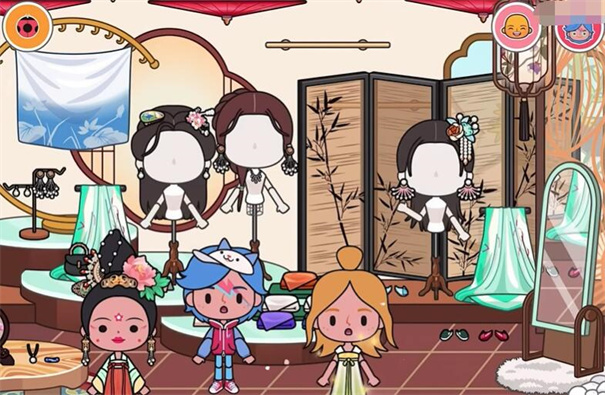 高自由度场景互动:游戏内超60个场景可自由切换,衣柜、冰箱、灯具等物品均可交互。例如在梨园可边用餐边看戏,集市摊位支持亲手制作丝绸衣物,通过养蚕、染色等工序还原古代工艺。