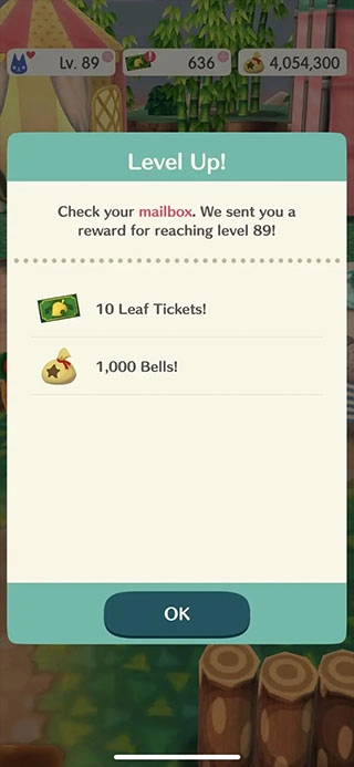 每升一级,都会给10 叶票,和1000 bells