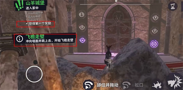 2、点击跳跃图标,山羊即可跨越栅栏或者登山高处