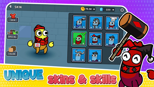 角色系统:提供多种角色皮肤供玩家解锁,部分皮肤可能带有特殊属性或视觉效果。