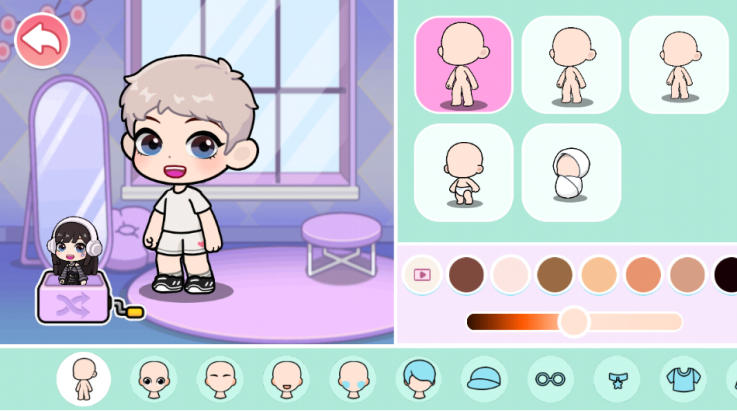角色定制:从发色弧度到围巾褶皱均可自由设计,提供瞳孔颜色、肤色、服装等数百种组合选项,支持随机搭配功能。