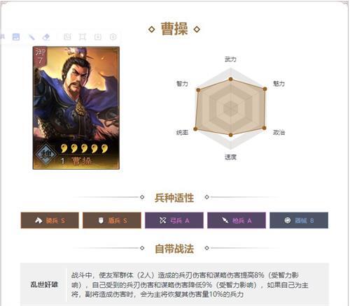 有着全游戏最高武力成长,统帅属性优秀,速度快,是物理阵容的最佳选择
