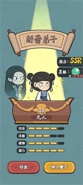 玩家无需亲自冒险,通过弟子管理实现资源积累,适合休闲玩家与策略爱好者。