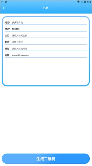 2、在名片制作文本中根据文本提示写好自己的信息,然后点击生成二维码