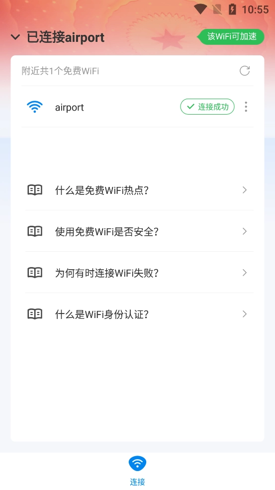 4、免费特性:节省网络流量,快人一步。随时随地免费连接,畅享 24 小时免费 WiFi,从此无需担忧月底流量不够用。