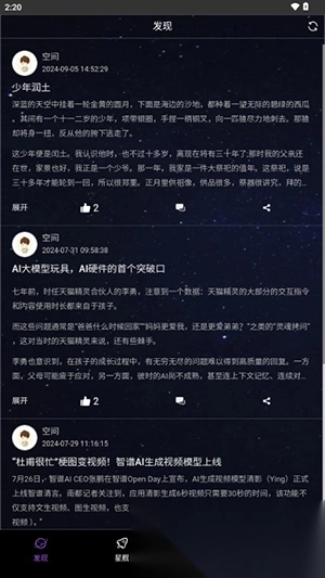 1. 在软件的发现板块中可以看到很多的AI帖子。