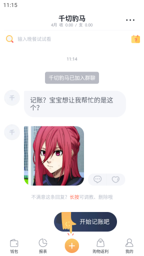 4、记账陪伴:可自行定制陪你记账之人的资料,让心仪的Ta常伴身侧