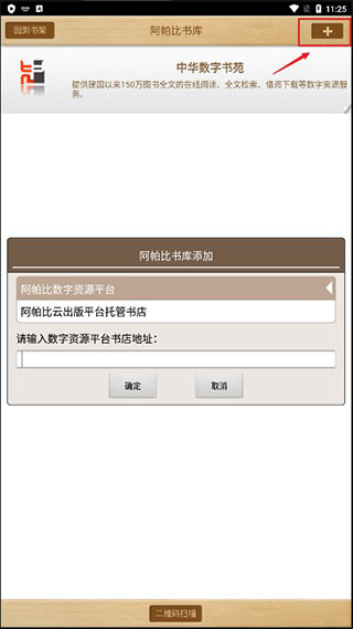 2、可以看到挚友中华数字书苑,点击右上角的+号,进行添加;