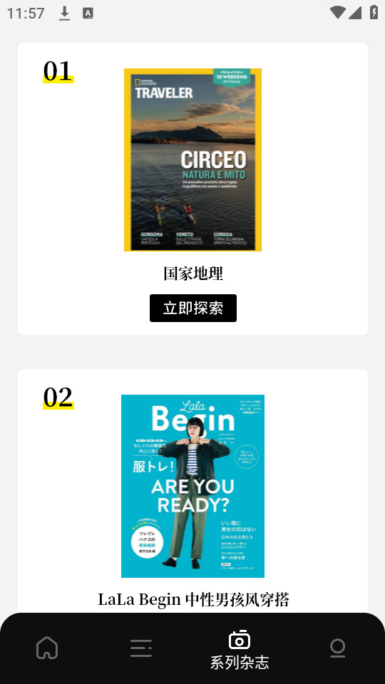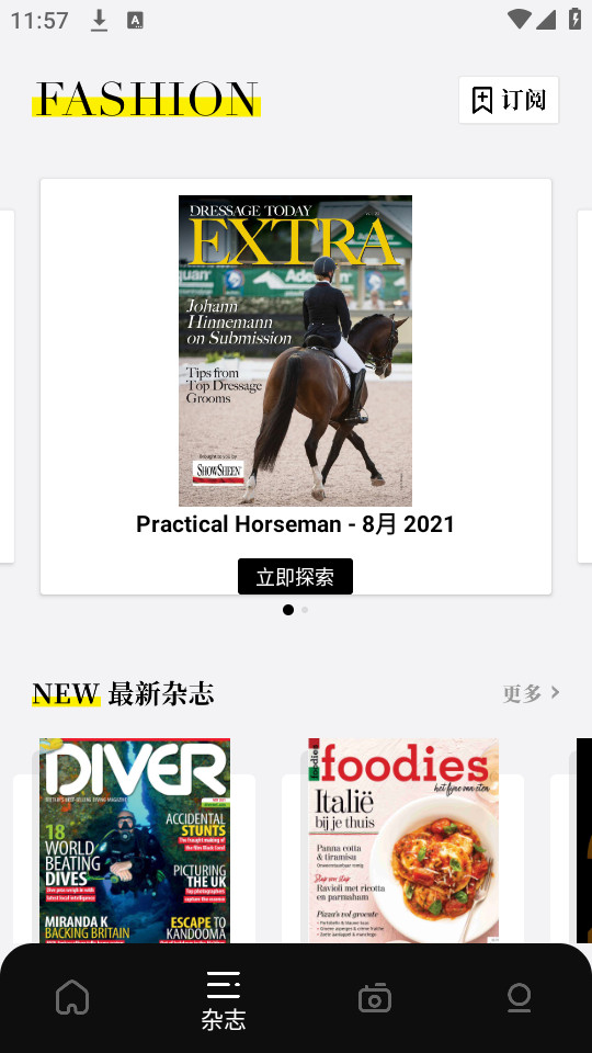 4.进入杂志迷首页之后,在杂志板块,点击【立即探索】就能够阅览你喜欢的杂志