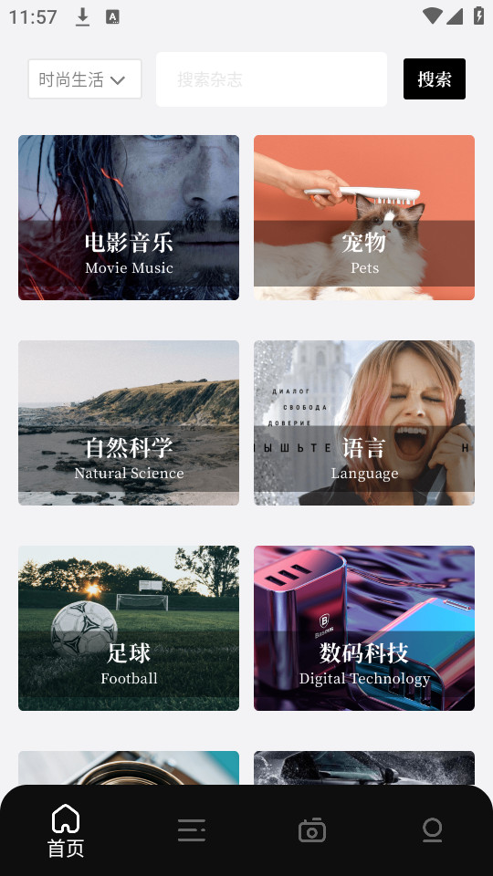 5.点击首页还能够根据分类选择你喜欢的杂志