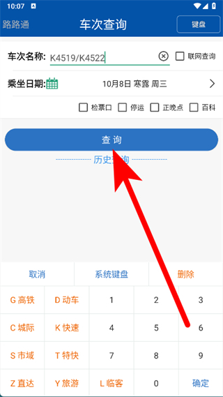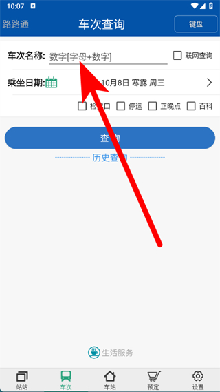 1、打开路路通,点击底部导航栏车次,进入车次查询页面。