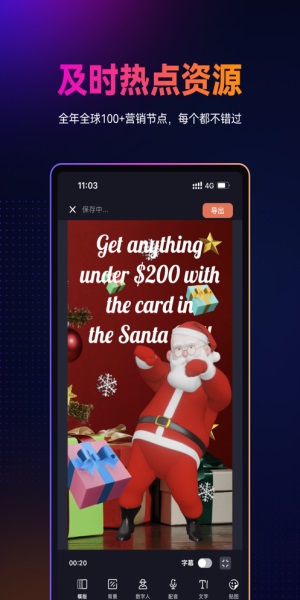 它使用起来极为专业,具备海量模板。我们能从中挑选背景音乐,且全部免费使用,绝无收费情况。每逢所有节假日,都会推送节日模板,助力完成主题视频拍摄,使用便捷。