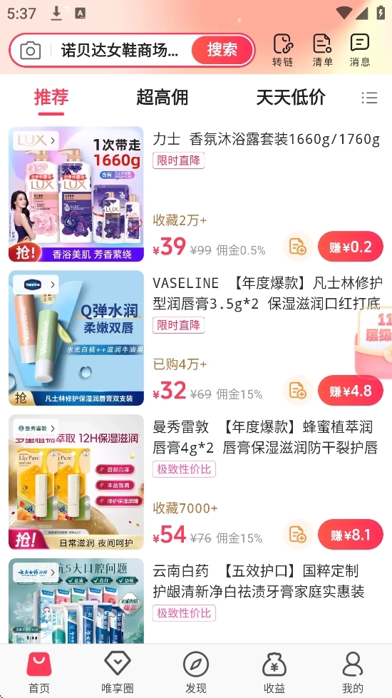 商品库:涵盖服饰、美妆、家居、食品等品类的优惠商品。