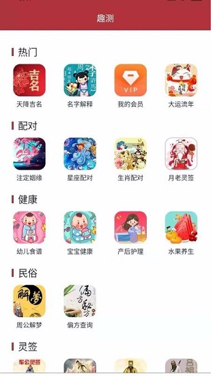 核心功能:生辰八字分析、五行匹配、名字生成与评分、姓名测字、名字解缘等。