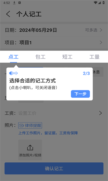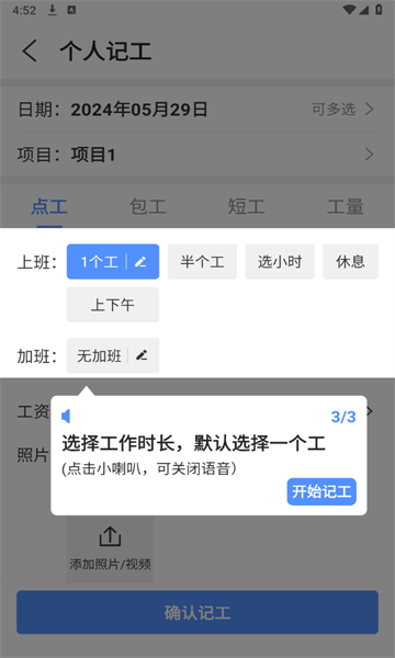 工友能够自行选择创建个人记工本或班组记工本,以此便捷解决建筑工地记工天、记工时、工地记账以及建筑工地考勤等一系列工地管理问题。此举旨在全力为建筑工友提供高效的办公服务,让他们体验在线记工天和记工时的便利。