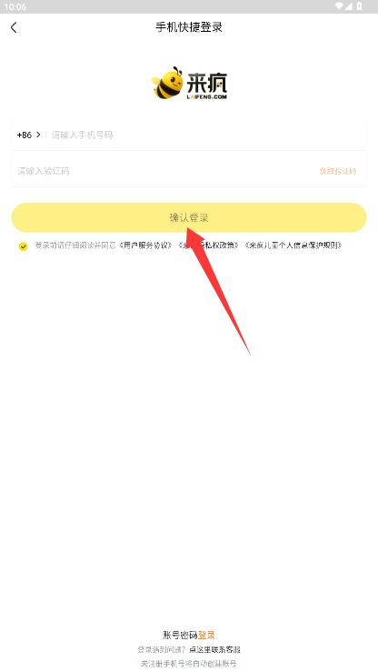 2、在登录界面输入手机号码和短信验证码,勾选同意相关协议后点击确认登录进入。