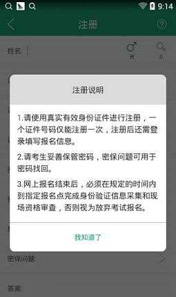 (2)考生一定要牢牢记住注册时所设置的“密保问题”与“密保答案”,这两项信息在登录密码丢失后,是考生自行找回密码的关键验证项目。
