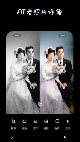 3、黑白照片上色:能让黑白老照片在瞬间焕变为彩色,让旧时光的斑斓色彩得以重现。