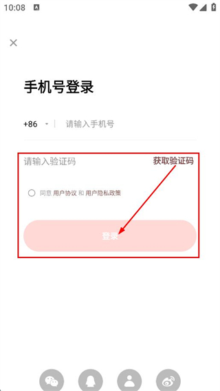 4、点击获取验证码并输入,勾选同意后点击登录,完成登录操作。