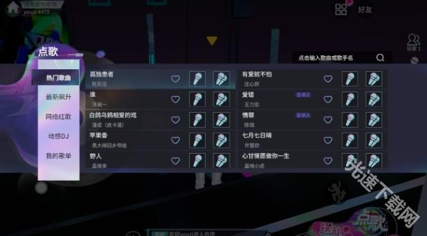 2、接着进入到房间后点击点歌即可查看到歌单