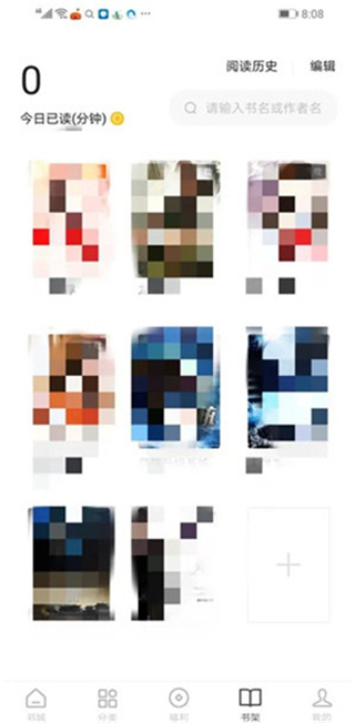 4、在书架界面,这里是为了我们把喜爱的书籍保存在这里,之后继续阅读的时候可以在这里找到。