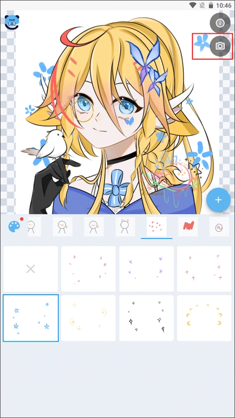 2、若在界面中想要编辑图片,可选择下方的功能选项,并点击右上方的照相机图标。