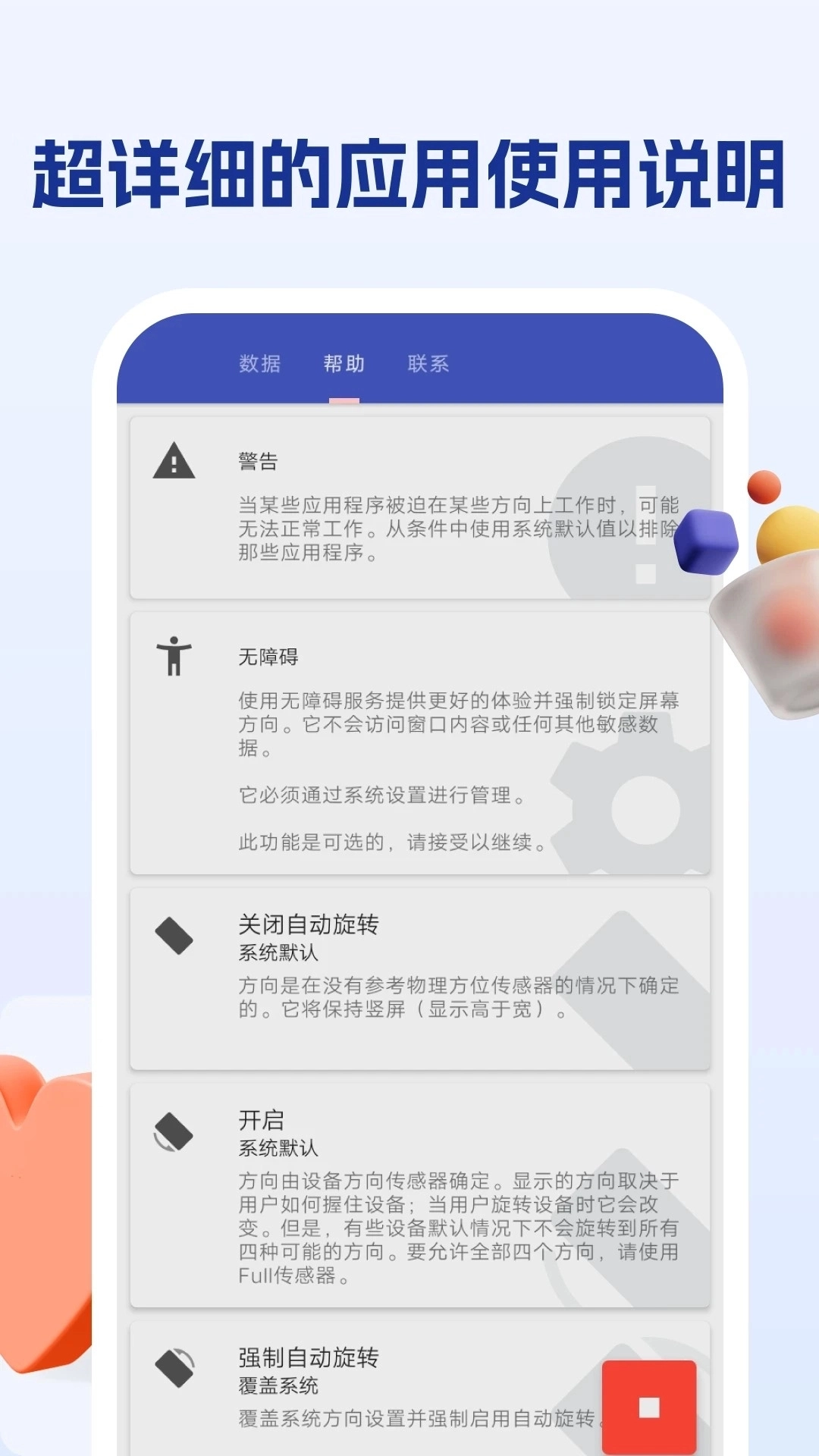 操作逻辑:安装后授予必要权限,通过悬浮窗或通知栏快捷按钮实时切换方向,无需频繁进入设置菜单。