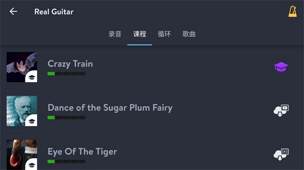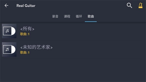 1、Real Guitar支持读取本地音乐,大家只需将自己想要的歌曲保存到本地,接着点击上方的开始按键即可;