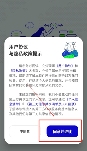 1、点击同意后进入应用界面,确保能够愉快地访问各种功能与服务,为后续使用做好准备。
