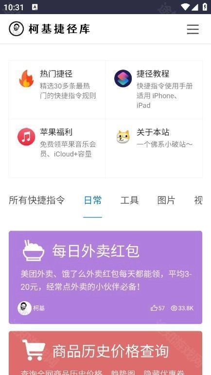 柯基捷径库是一款功能强大又实用的工具类应用,它为用户整合了大量实用工具,能助力大家更高效地处理社交、生活与工作事务。软件内还收录了众多网站及资源链接,搭配各类便捷工具和快捷指令操作,可帮助用户提升手机使用效率,同时修复设备中已知的各类bug。此外,软件界面简洁直观,支持用户根据个人需求自定义快捷指令,带来出色的使用体验,操作起来也十分便捷,感兴趣的用户不妨来本站体验一番!