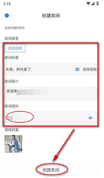 2、然后进入创建房间里面填写相关信息,点击"创建房间"。