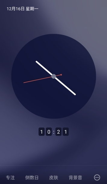 桌面番茄时钟手机版是一款实用的手机桌面时钟应用,不仅能自由切换各类主题壁纸,还能通过白噪音营造宁静氛围,帮助用户放松心情、舒缓压力。内置的番茄时钟功能则可助力提升工作与学习效率,让您专注投入、不受干扰,更高效地管理时间,实现自我提升!