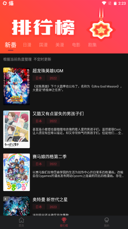 排行榜:提供热门推荐、最新更新等榜单,帮助用户发现优质动漫。