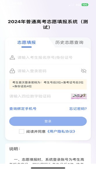 需要输入考生报名号等相关信息来登录后即可进行志愿填报使用。