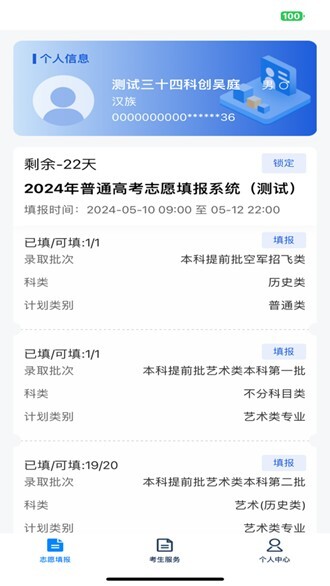 界面采用简洁清新的设计风格,这种简洁的界面能让志愿填报与考生服务相关信息都清晰展示出来。