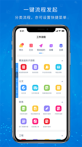 用户可以在手机上完成各种办公任务,如查阅文件、处理工作流程、发送邮件等,实现真正的移动办公;