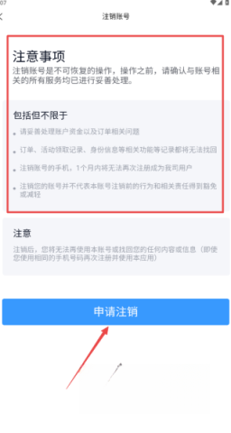 4、进入注销界面后,请务必仔细阅读注销协议,确认所有信息准确无误,随后点击“申请注销”按钮即可完成操作。
